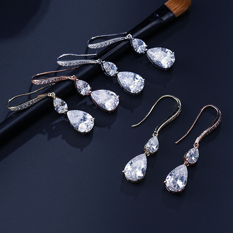 RAKOL Enkel Lång Utsökt vattendroppe Zirkon Kvinnlig Enkel Bankett All-match örhängen