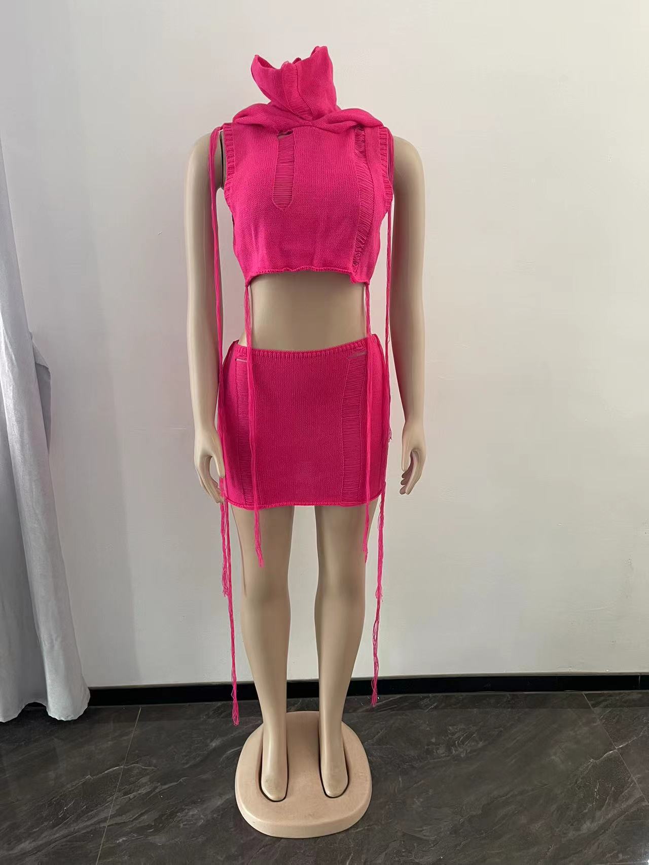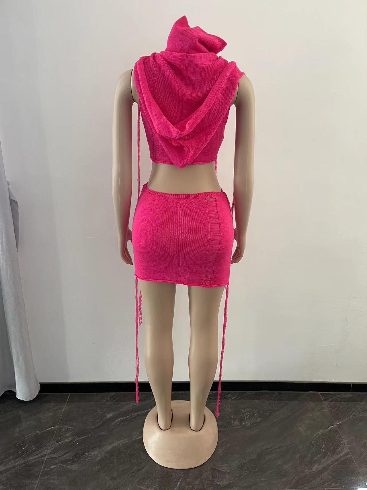 Sommar Ny Sexig Riven Ärmlös Huvad Strandkjol Kostym